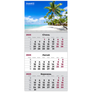 Календар настінний квартальний 2026 р., 297х630 мм, 1 пружина