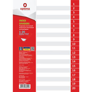 Роздільник аркушів А4 Optima, пластик, 1-20 розділ, цифровий