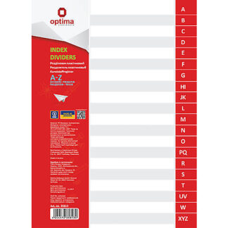 Роздільник аркушів А4 Optima, пластик, від А до Я, алфавітний