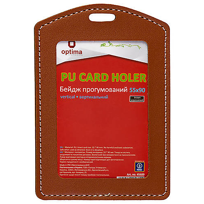 Бейдж преміальний вертикальний OPTIMA 55*90 мм прогумований, коричневий кількість