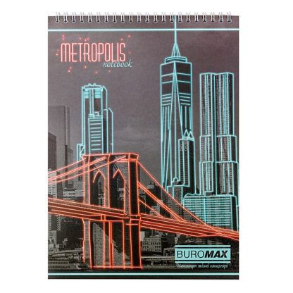 Блокнот серії METROPOLIS від BUROMAX – практичний помічник для ведення різних записів, виконаний у яскравій обкладинці.