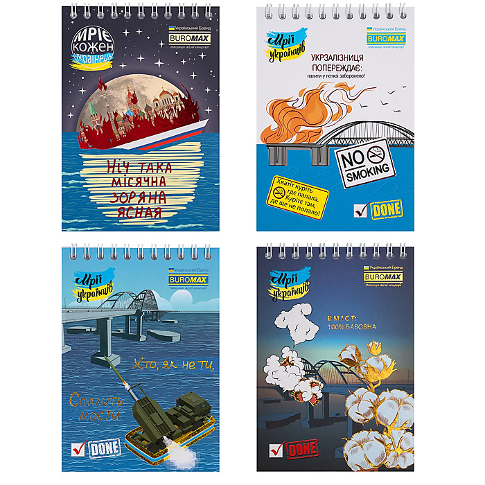Блокноти PATRIOT від BUROMAX це актуальне рішення для збереження записів, нотаток, думок. Цікаві обкладинки, які містять мотивуючі вислови, направленні на зарядження позитивом, вірою у міцність і перемогу, мають візуалізації думок і мрій багатьох людей, обов’язково сподобаються широкому колу як маленьких, так і дорослих українців. Завдяки лінійці дуже різноманітних дизайнів, такий блокнот може стати приємним актуальним подаруночком або незамінним другом для кожного.