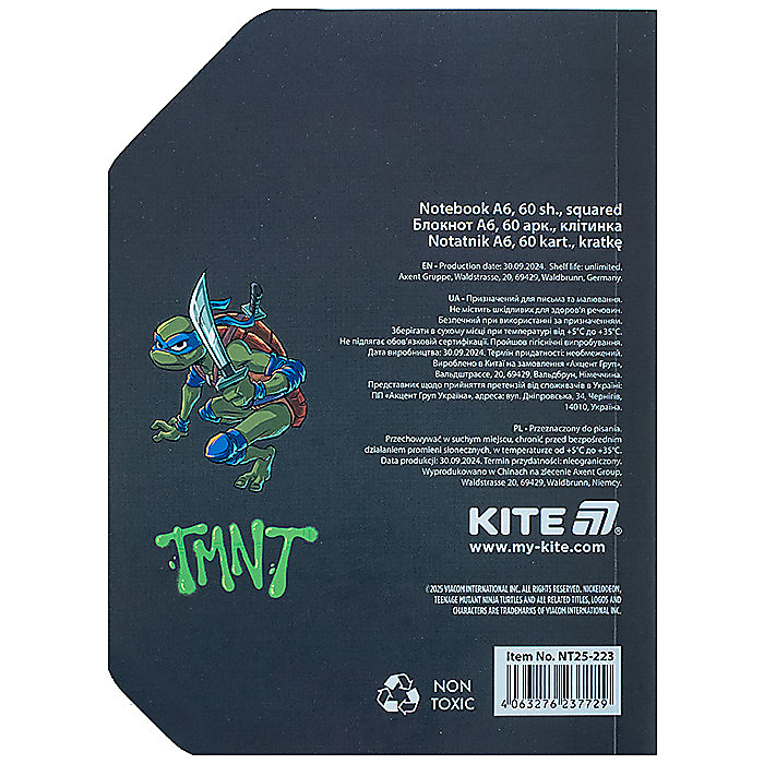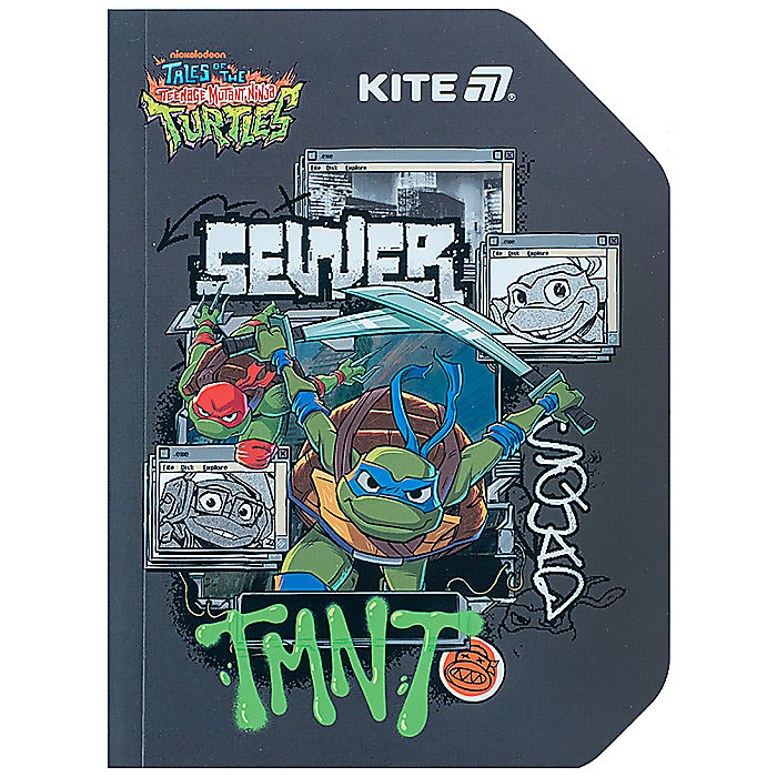 Блокнот Kite NT25-223 в приголомшливій яскравій ліцензії Ninjia Turtles та привабливій паперовій обкладинці. Ефектно виглядає через незвичайну фігурну форму. Внутрішній блок – кольорова клітинка .