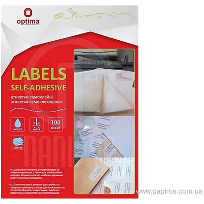 Етикетки самоклейні Optima 8шт. 105×74 мм, А4 100 арк.