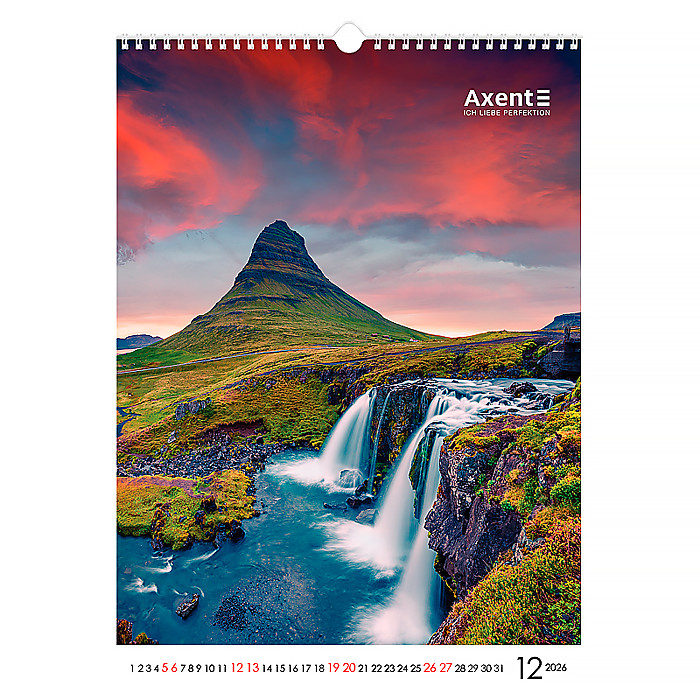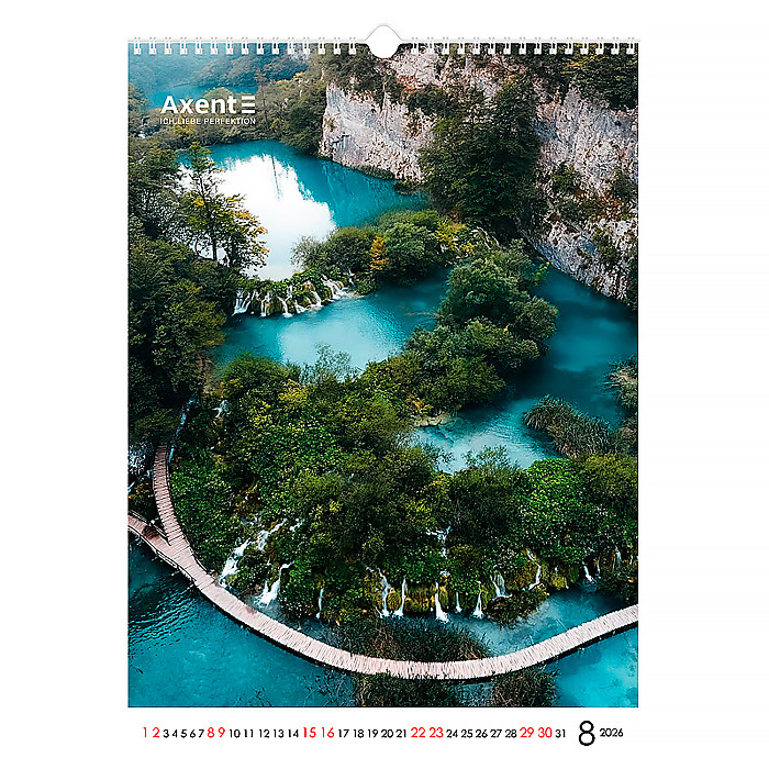 Оригінальний календар Axent стане ефектною окрасою офісу та щодня нагадуватиме вам про важливі дати. Його неперевершений дизайн з великими високоякісними світлинами порадує найвимогливіших естетів та даруватиме натхнення для успішного планування справ.