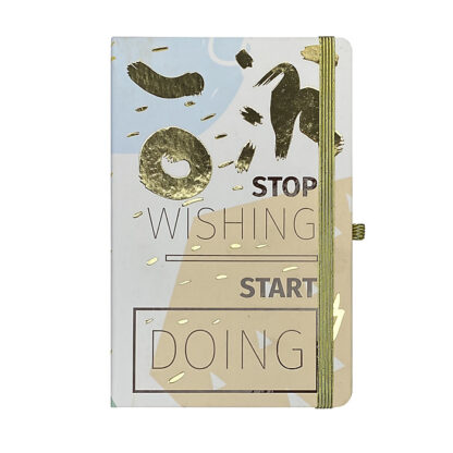 вертикальна гумка для фіксації книжки в закритому стані та петелька-гумка для ручки – золотого кольору в тон дизайну обкладинки