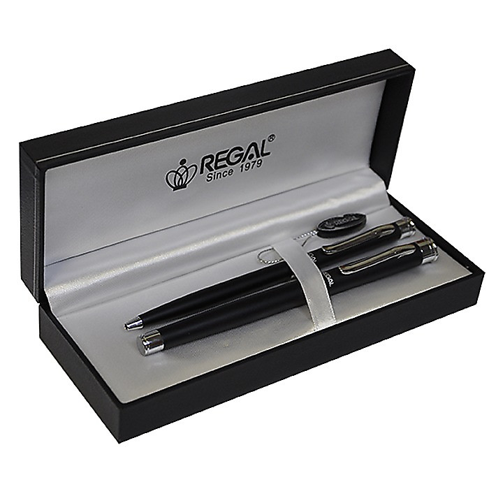 Комплект ручок (перо+кулькова) в подарунковому футлярі L, чорний