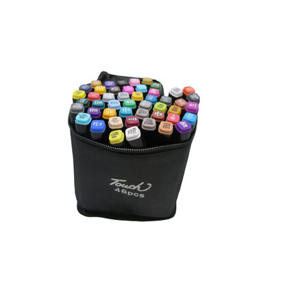 Набір маркерів для скетчингу 48 кольорів в сумці — це спеціальні маркери, призначені для скетчінгу, малювання ілюстрацій і графічного дизайну. Мають спиртовы чорнила, та два наконечника: тонкий наконечник (як правило, це лінер) використовується для чітких ліній і деталей та клиноподібний наконечник що дозволяє робити широкі штрихи, створюючи ефекти градієнта та заливки. Данні маркера популярні серед як серед починаючих митців, так і між художників, дизайнерів, архітекторів та ілюстраторів завдяки своїм властивостям та зручності у використанні.