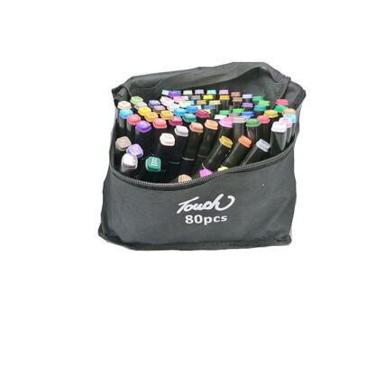 Набір маркерів для скетчингу 80 кольорів в сумці — це спеціальні маркери, призначені для скетчінгу, малювання ілюстрацій і графічного дизайну. Мають спиртовы чорнила, та два наконечника: тонкий наконечник (як правило, це лінер) використовується для чітких ліній і деталей та клиноподібний наконечник що дозволяє робити широкі штрихи, створюючи ефекти градієнта та заливки. Данні маркера популярні серед як серед починаючих митців, так і між художників, дизайнерів, архітекторів та ілюстраторів завдяки своїм властивостям та зручності у використанні.
