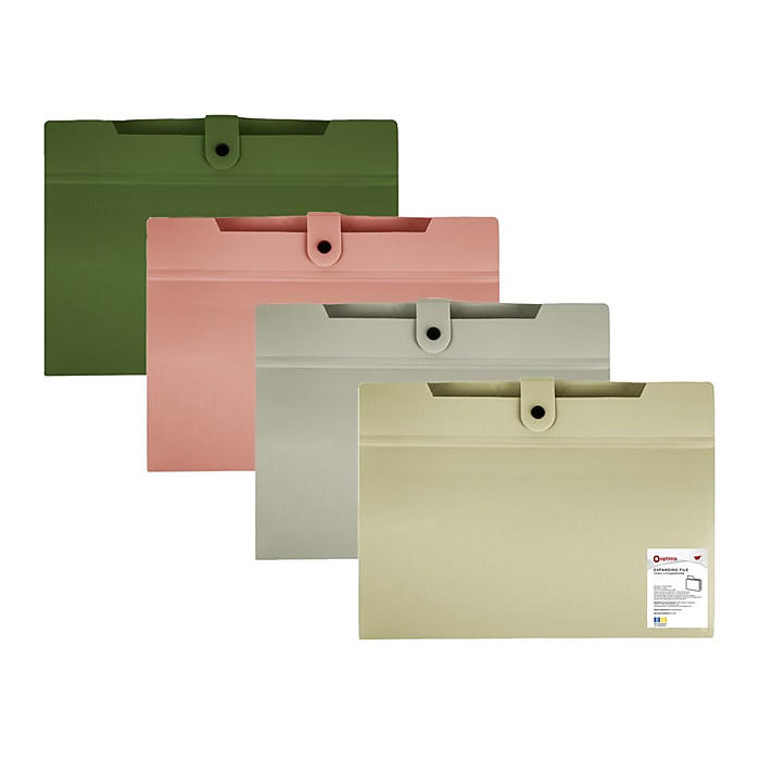 Папка з розширенням, А4, OPTIMA, 600 мкм, фактура “СМУГА”, кольори – кораловий, какао, хакі, сірий.