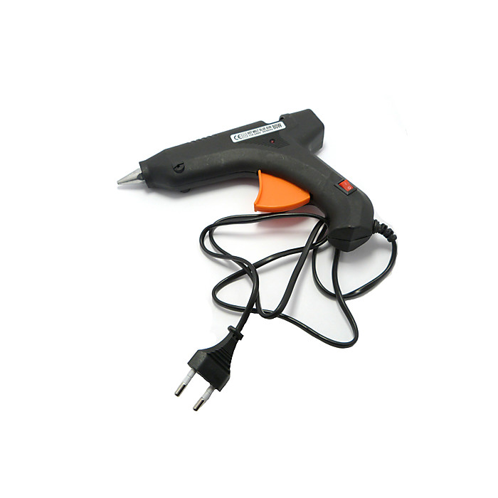 Пістолет для клею, диаметр клеєвого стрижня 11мм, потужність 80W. Данний пристрій призначений для швидкого склеювання чистих, сухих і знежирених різних за типом матеріалів (дерево, кераміка, паперу, картон, ДСП, лінолеум, пластик) гарячим плавким клеєм.Нагрівальний елемент, розташований усередині корпусу, розігріває клей до стану рідкої маси, яка подається через сопло. Термопістолет застосуються в самих різних галузях, оскільки здатний міцно з’єднати дерев’яні деталі, кераміку, пластик, картон, тканини і багато інших матеріалів. Тому інструмент незамінний в будівництві, при ремонті електротехніки, оформленні інтер’єрів, рукоділля та ін.