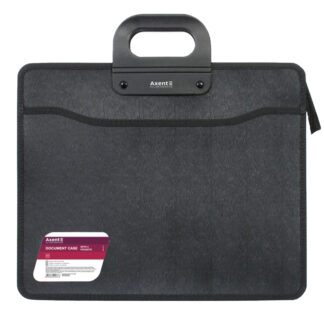 Портфель формату В4 + виготовлений із пластику чорного кольору з прошивкою. Три внутрішніх і один зовнішній відділення. Закривається за допомогою блискавки, є ручка.