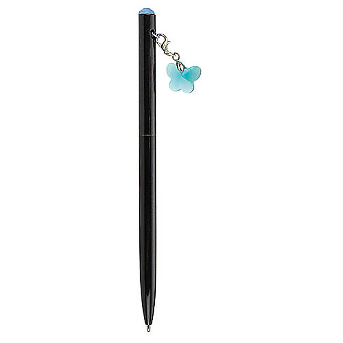 Ручка металева з блакитним брелоком-кристалом “Метелик”, пише синім