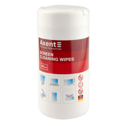 Серветки по догляду за екранами Axent ефективно і дбайливо очищають поверхню TFT / LCD екранів ноутбуків; моніторів; телевізорів; телефонів; планшетів і т.д. Відповідають вимогам міжнародних стандартів. Не містять спирту; не ушкоджують антиблікове покриття; не залишають ворсинок і розводів. Без запаху; дерматологічно безпечні. Матеріал – крепований папір – міцний; еластичний; не пошкоджує поверхню. Мають антистатичні властивості; завдяки чому пил значно менше осідає на поверхню. Забезпечують антибактеріальний ефект. Зручні у використанні: Зніміть кришку. Дістаньте серветку з середини рулону і протягніть у отвір у кришці. Відірвіть серветку по перфорації. Щільно закрийте кришку. Протирайте екран у холодному (вимкненому) стані зверху вниз – це захистить від утворення розводів.