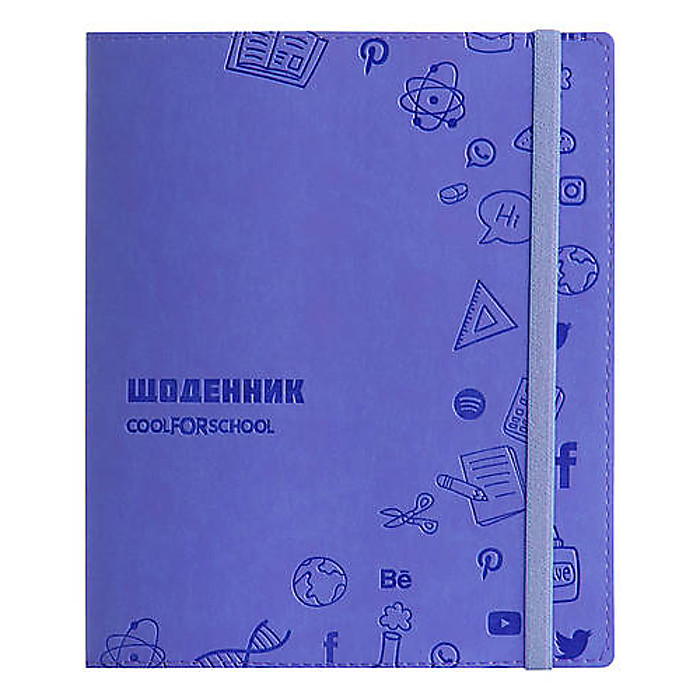 Щоденник шкільний, 165х210 мм, обкладинка – м’яка з штучної шкіри з тисненням, кріплення блоку – шитво на нитку, 48 арк., колір синій