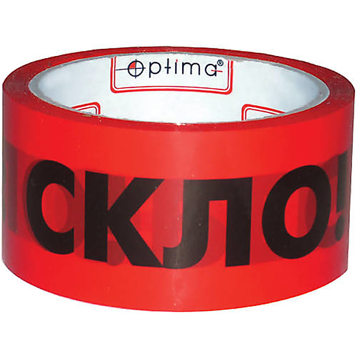 Клейка стрічка пакувальна інформаційна Optima, дозволяє виділити запакований вантаж. Не боїться вологи, не темніє з часом. Має сильний клейкий шар.