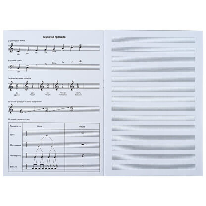 Зошит для нот Kite у зручному форматі А4, 20 л, щільність внутрішнього блоку 65г/м2. Схеми та підказки з нотної грамоти на форзацах. Яскравий та стильний дизайн.
