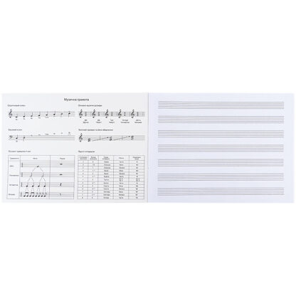 Зошит для нот Kite у зручному форматі А5, 20 л, щільність внутрішнього блоку 65г/м2. Схеми та підказки з нотної грамоти на форзацах. Яскравий дизайн.