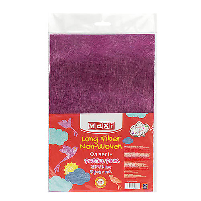 Флізелін, 20*30 см, 30±1 г/м2, 5 аркушів у пакеті з підвісом. Насичений рожевий.