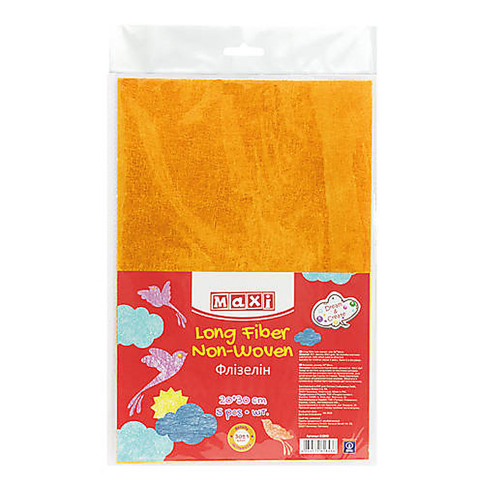 Флізелін, 20*30 см, 30±1 г/м2, 5 аркушів у пакеті з підвісом. Соковитий помаранчевий.