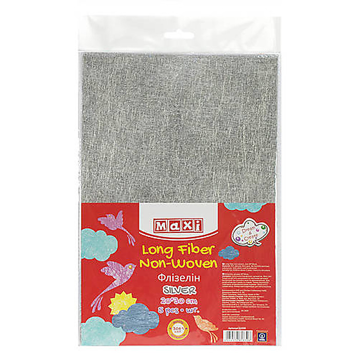 Флізелін, 20*30 см, 30±1 г/м2, 5 аркушів у пакеті з підвісом. Сріблястий.
