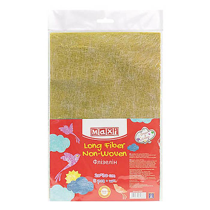 Флізелін, 20*30 см, 30±1 г/м2, 5 аркушів у пакеті з підвісом. Золотистий.