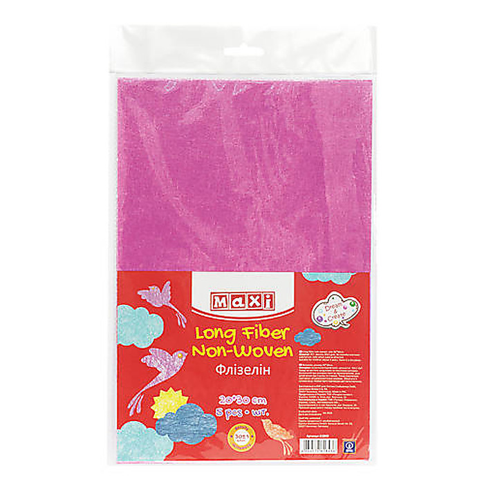 Флізелін, 50*50 см, 30±1 г/м2, 20 аркушів з індивідуальним стікером у пакеті. Ніжний рожевий.
