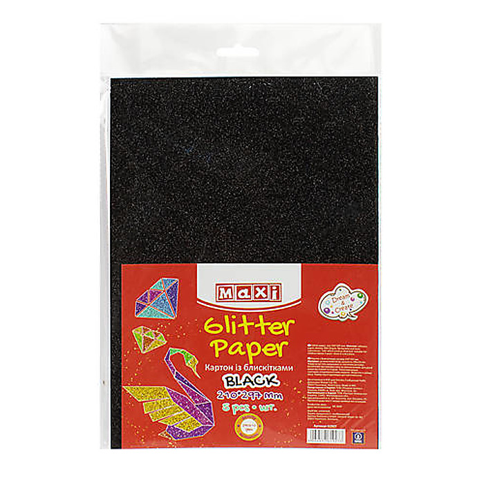 Картон з блискітками 290±10 г/м 2. Формат A4 (21х29,7см), чорний кількість