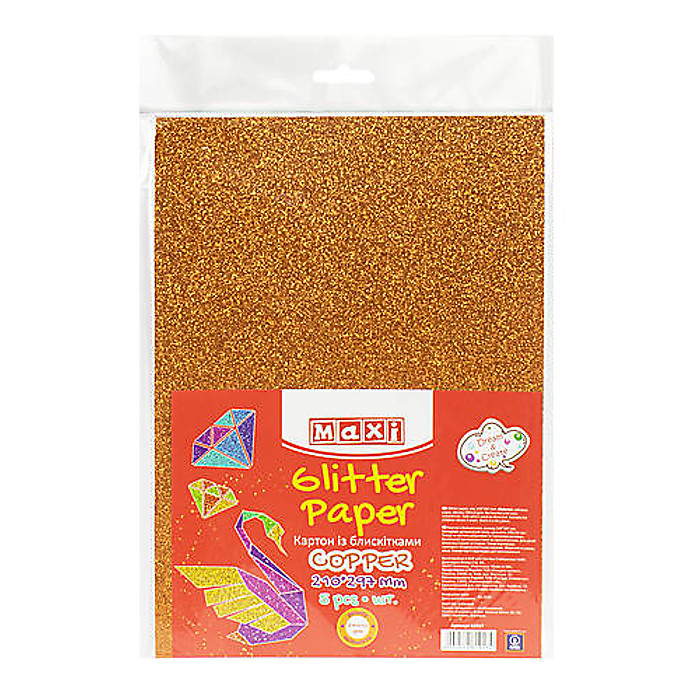 Картон з блискітками 290±10 г/м 2. Формат A4 (21х29,7см), мідний
