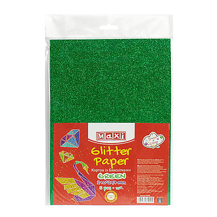 Картон з блискітками 290±10 г/м 2. Формат A4 (21х29,7см), зелений