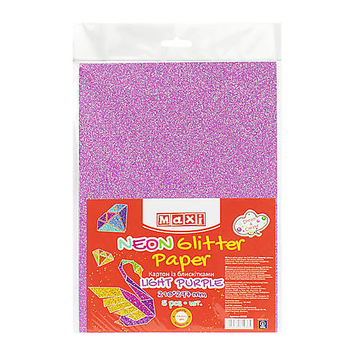 Картон з блискітками флуоресцентний 290±10 г/м 2. Формат A4 (21х29,7см), ніжний пурпурний