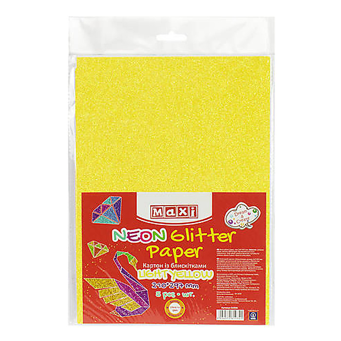 Картон з блискітками флуоресцентний 290±10 г/м 2. Формат A4 (21х29,7см), сонячний жовтий