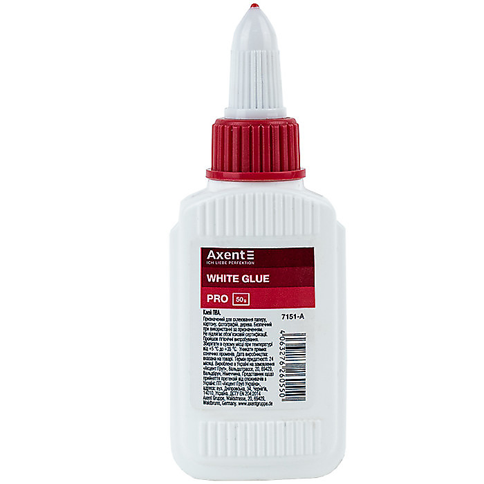 Клей ПВА Axent PRO використовується для склеювання паперу, картону, фотографій, тканини і дерева. Ковпачок-дозатор регулює подачу клею та запобігає його висиханню, дозволяє наносити клей краплями або тонкою лінією. Не токсичний, змивається водою. Об’єм 50 мл.