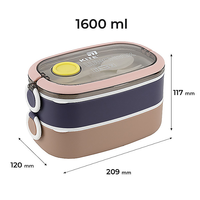 Ланчбокс подвійний Kite K25-1181-1 1600 мл — універсальний та місткий контейнер для повноцінного обіду, який адаптується під ваш ритм життя. Ідеальний для школи, офісу, прогулянок, пікніків і подорожей. Завдяки двом відділенням із додатковими кришками, ви самі вирішуєте, скільки взяти з собою: одну ємність чи обидві одразу.