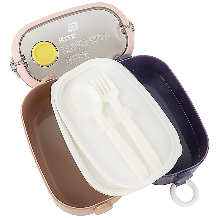 У комплекті є пластикова ложка та виделка, зручно зафіксовані всередині.