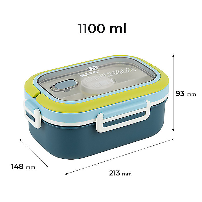 Ланчбокс з наповненням Kite K25-1182-2 1100 мл — практичне рішення для повноцінного обіду будь-де: у школі, на роботі, в подорожі чи на прогулянці. Завдяки продуманій конструкції та місткості, в ньому легко розмістити основну страву, гарнір, салат і навіть соус — усе компактно й зручно.