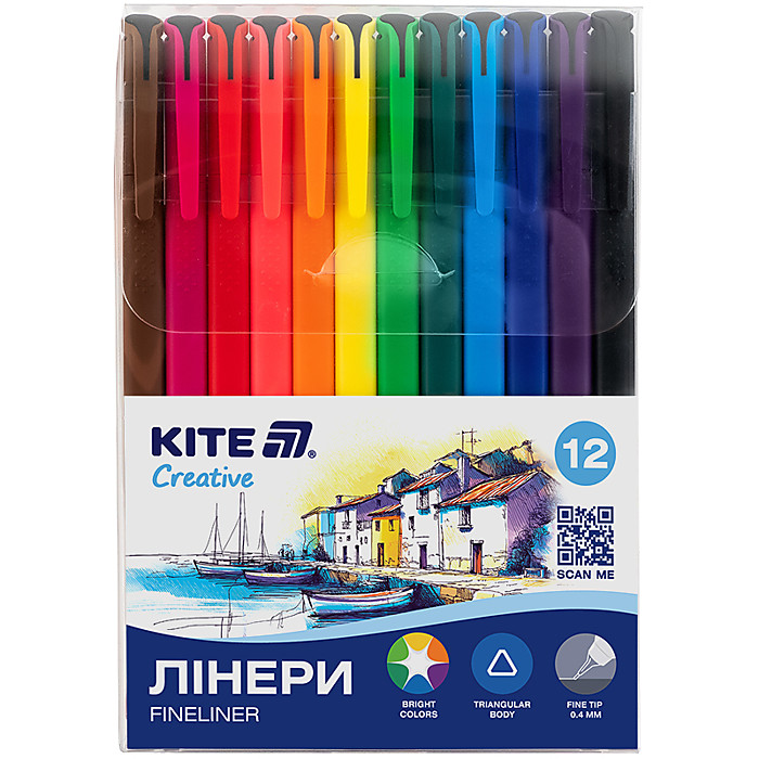 Кожен лінер має тригранний корпус, який зручно лежить у руці та сприяє правильному положенню пальців під час письма. Колір корпусу відповідає кольору чорнил – це дозволяє легко знаходити потрібний відтінок. Тонкий пишучий вузол створює акуратну лінію товщиною 0,4 мм, що ідеально підходить як для письма, так і для малювання дрібних деталей, нанесення контурів. Лінери Kite Creative зручно зберігати й переносити у стильному прозорому пластиковому пеналі.