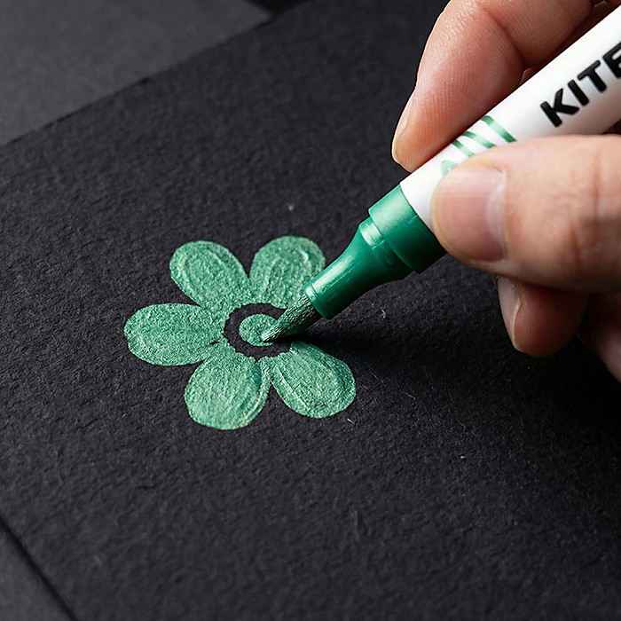 Акрилові маркери двосторонні металізовані Kite Creative K-1294 – універсальний інструмент для творчості. Насичені акрилові чорнила лягають щільно та яскраво на різні поверхні: папір, картон, дерево, камінь, кераміку чи тканину. Головна особливість цих маркерів – двосторонній пишучий вузол: з одного боку – гнучкий пензлик, з іншого – класичний круглий наконечник. Такий формат дозволяє легко змінювати стиль лінії та працювати у різних техніках, створювати як точні деталі, так і широкі кольорові мазки.