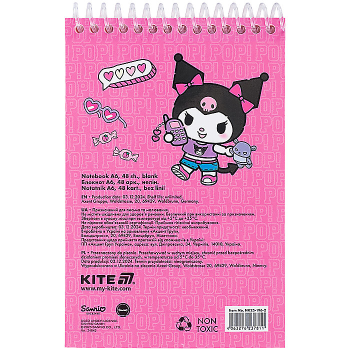- Ефектний дизайн в ліцензії Kuromi – подарує радість та натхнення.