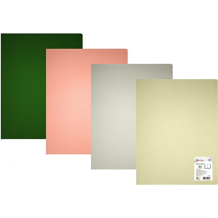 Папка А4 з 20 файлами, OPTIMA, 600 мкм, фактура “СМУГА”, кольори – кораловий, какао, хакі, сірий.