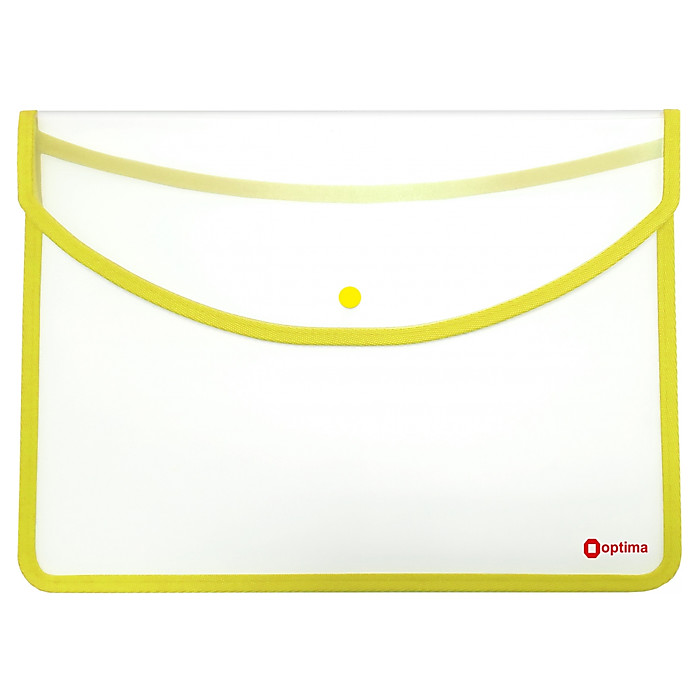 Папка-конверт А4+ на кнопці, прозора, Optima, 500 мкм, жовтий кант