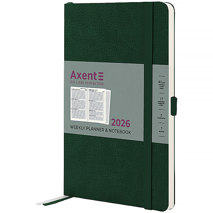 Щотижневик Axent формату А5- із серії Soft Skin в м’якій обкладинці із текстурою під шкіру. Використовується для щоденних записів, а також ділових та творчих задач.