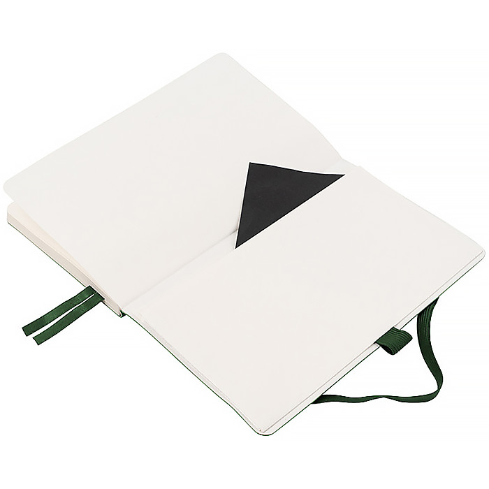 Дві різнокольорові закладки-ляссе дозволяють швидко знайти та відкрити потрібні сторінки. Кишеня на форзаці надійно зберігає нотатки, чеки, картки та інші важливі дрібниці. Еластична тасьма запобігає самовільному відкриванню. Містить 96 аркушів, розмір – 125*195 мм.