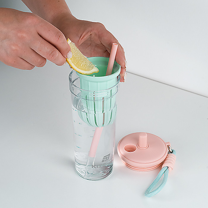 Мірна шкала на корпусі дозволяє легко контролювати кількість рідини — зручно стежити за водним балансом протягом дня.