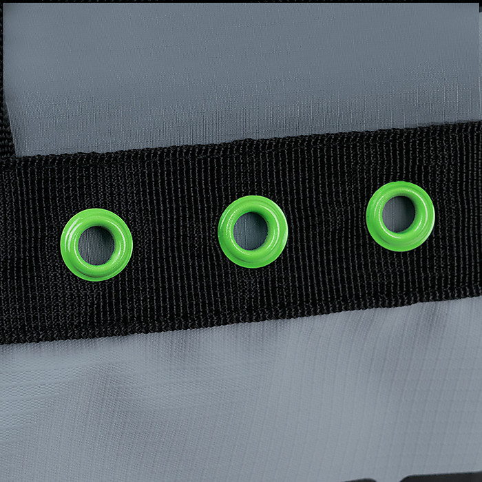- Декор: тканина матовий ріпстоп, декоративна вставка з мембраної тканини, об’ємний друк, задрукована тасьма, металеві люверси.