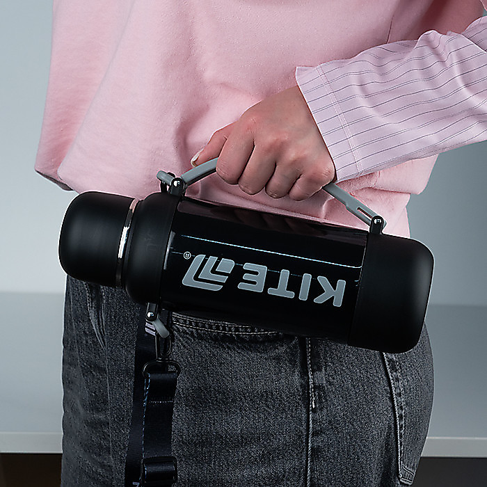 Прогумована ручка-переноска та знімний текстильний ремінець на карабінах забезпечують максимальний комфорт у дорозі. Носіть термос у руці або через плече — як вам зручно.
