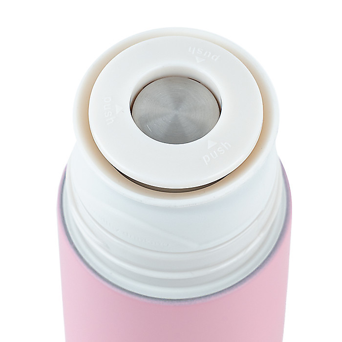 Термос має надійний клапан: щоб налити напій, достатньо одного натискання — не потрібно відкручувати повністю. Така система зручна, гігієнічна й запобігає проливанню.