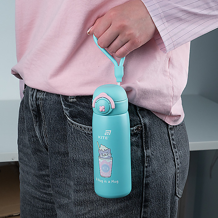 Кришка відкривається одним натисканням — зручно та швидко. Вона має надійний фіксатор, який запобігає випадковому відкриттю в рюкзаку. А зручний поїльник забезпечує комфортне пиття без потреби відкручувати кришку повністю.