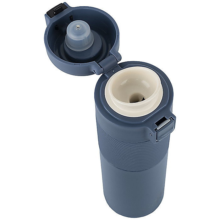 Кришка відкривається натисканням кнопки – цей механізм захищає напій від випадкових проливань.